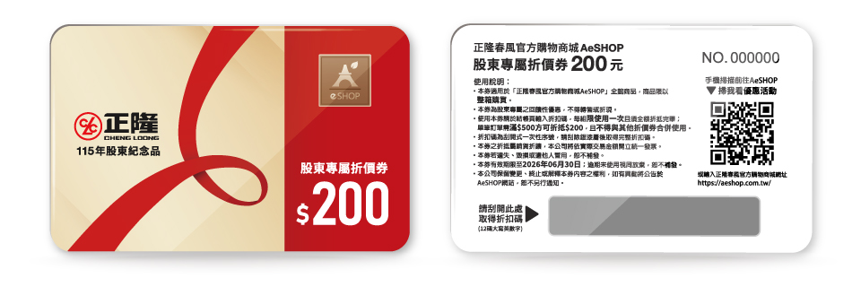 股東紀念品$200折價券