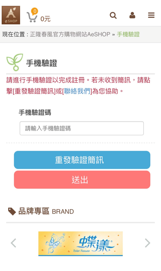 送出註冊資料後,系統會寄送驗證簡訊到您的手機。請查看簡訊並輸入驗證碼即可完成驗證。