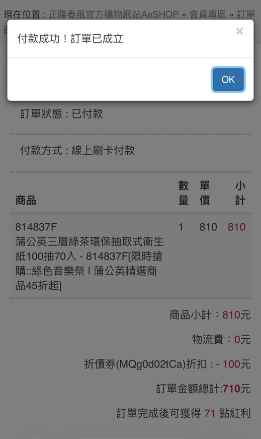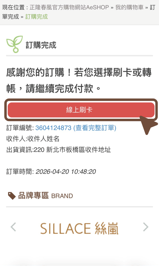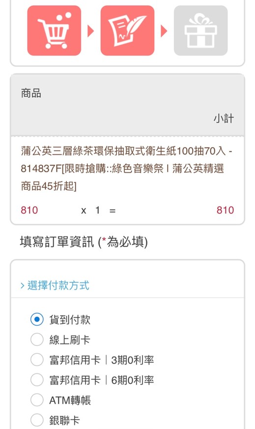 步驟7:訂購完成(貨到付款) 或 繼續完成付款