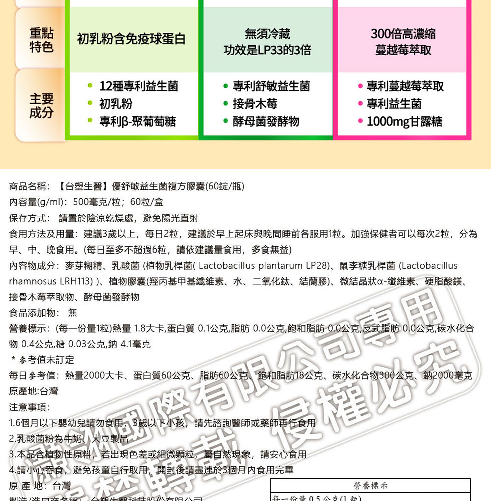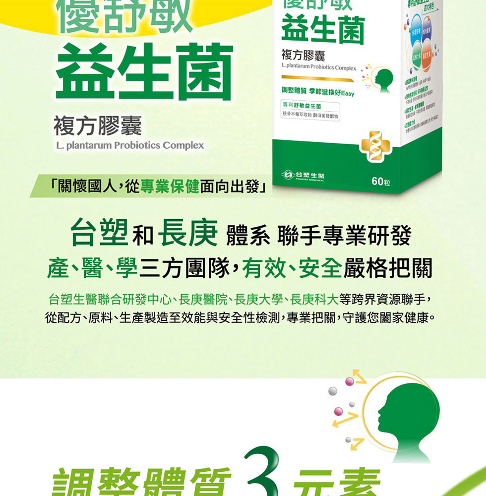 【台塑生醫】優舒敏益生菌複方膠囊(60錠/瓶) 5瓶/組