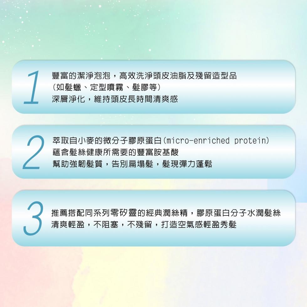 能深入髮根滋養秀髮,深層洗淨頭皮皮脂汙垢及髮膠髮蠟…等造型殘留物。