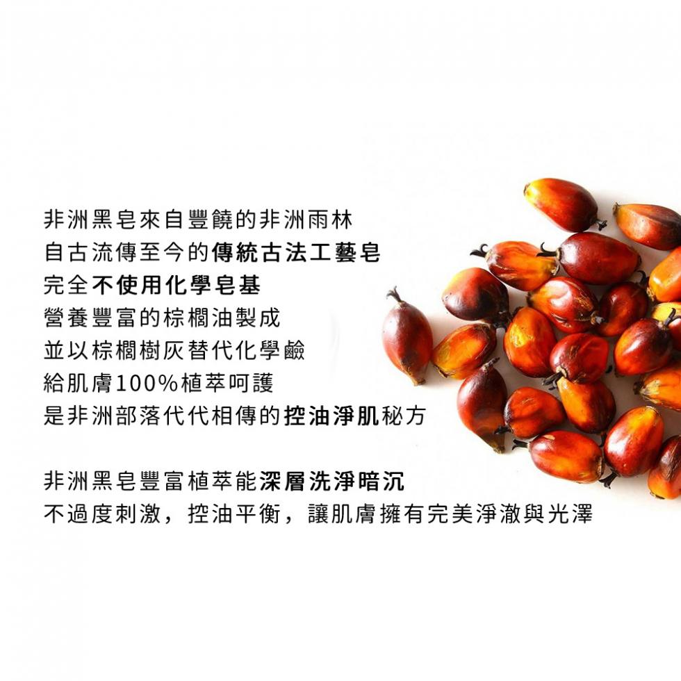 ① 源自非洲雨林的傳統黑皂,使用草木灰製皂加倍溫和